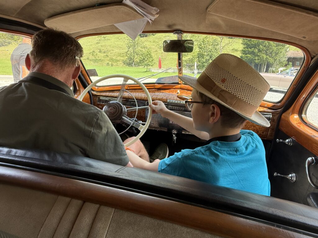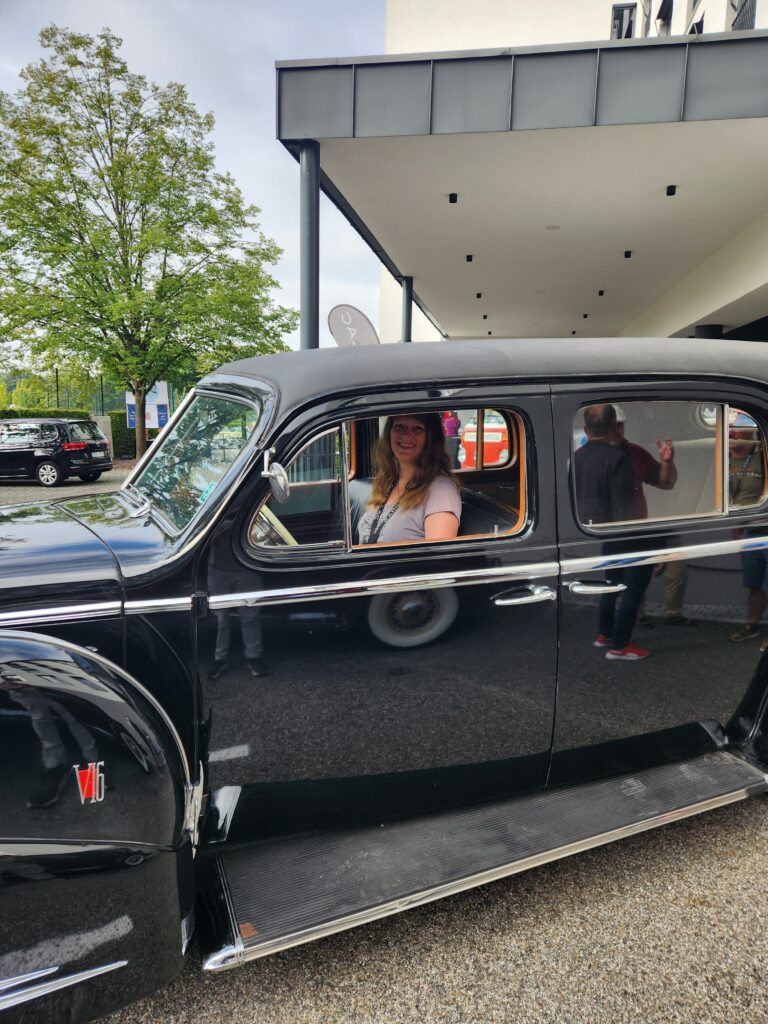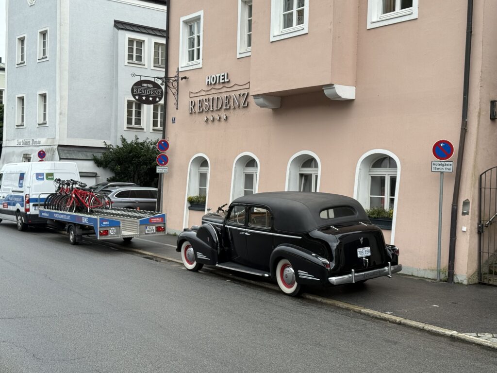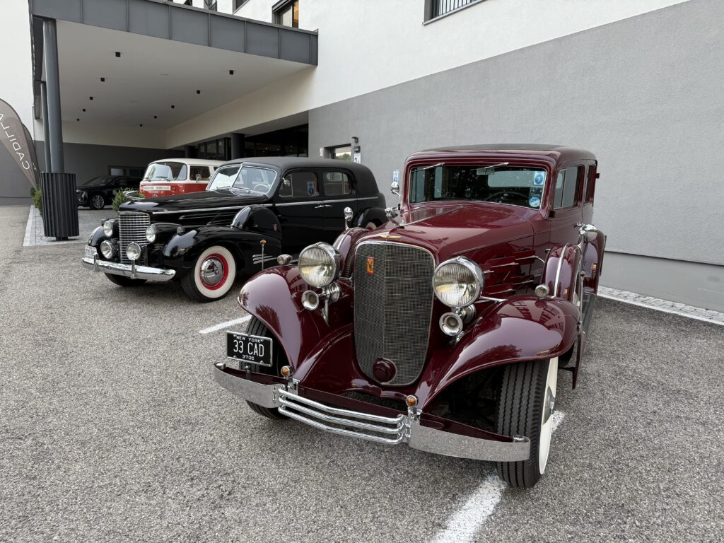 Guy Noir certainly has a presence that folks in the States can appreciate. At car shows and Grand Nationals he attracts attention and curiosity. So I was prepared for the old guy to be welcomed in the olde country. I did not, however, expect the car to be celebrated and adored as if he was George Clooney at the Academy Awards. “Please park your car on top of the hill, so all may admire it,” suggested George Pfeiffer, MEET organizer. Many BIG MEETERS—and there were 120 other Cadillac owners—had never seen a V-16. All were fascinated by the car and our journey. Why did you come? Why do you have this car? Where else will you go? How did you ship the car? We were questioned frequently, not only by fellow participants and residents, but Austrian media.