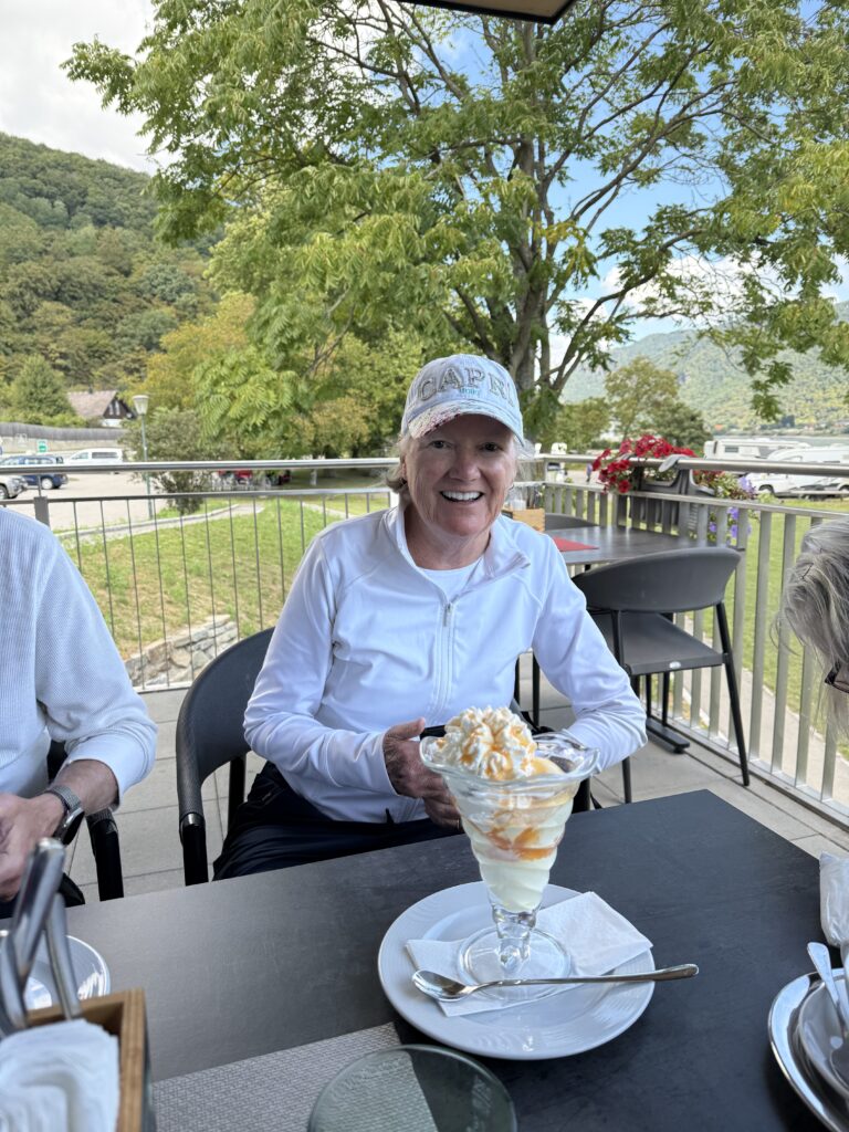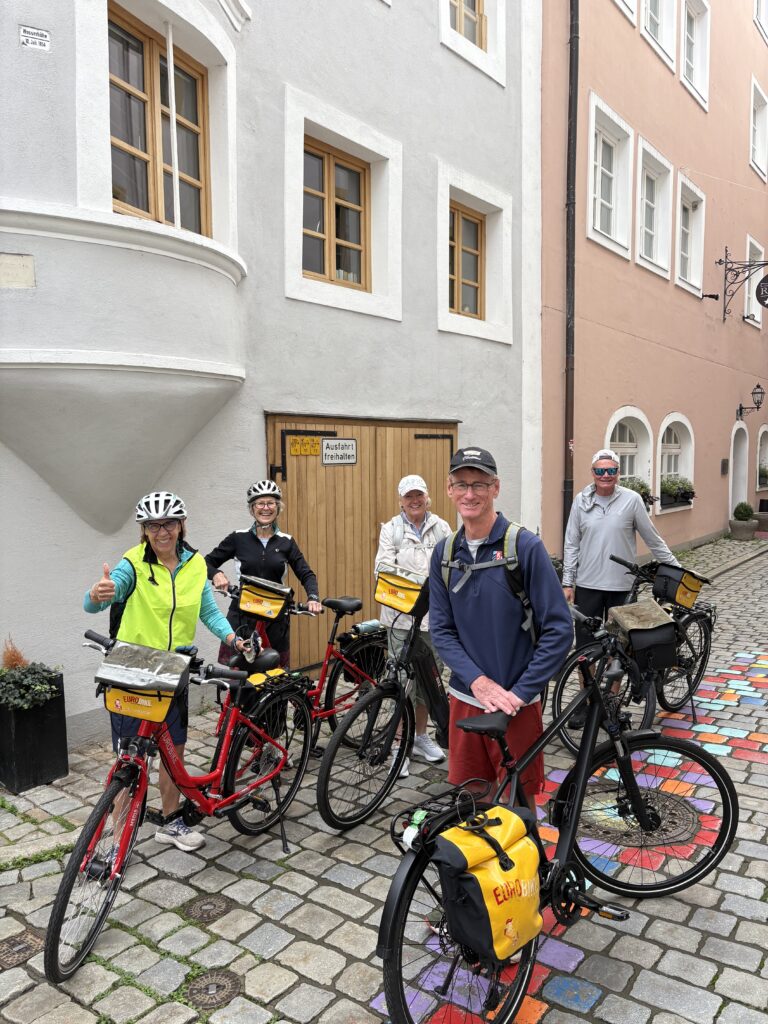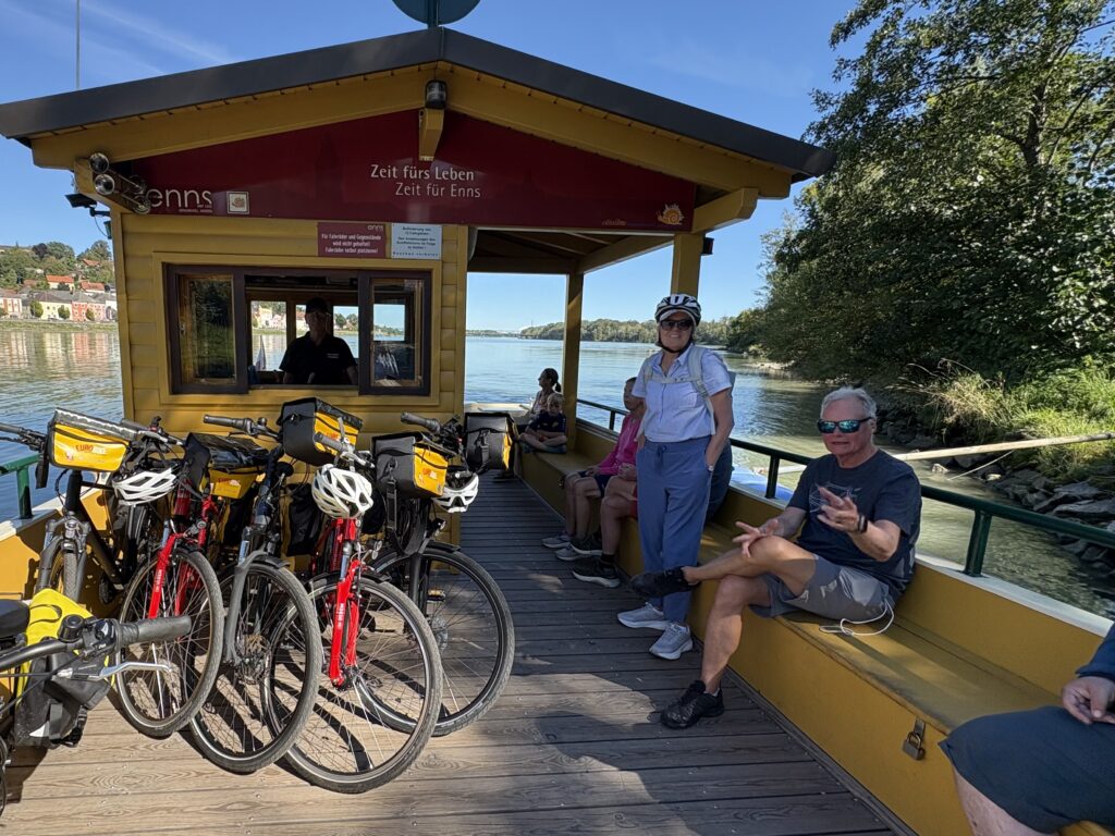 Passau, the town of three rivers, as it is known, plays an essential role in inland transportation. Barges and long, low-slung tour boats ply the Donau, as it is known in these parts, all the way to its end in the Black Sea. Along the way are some of Europe’s greatest cities: Budapest, Bratislava , and Vienna. Our destination was Vienna, but not by car or boat, instead by bicycle. This meant Guy Noir had to sit this one out. Luckily our hotel put us in touch with a family who rented us a secure underground location where the old guy could get some well-deserved rest. In Passau, we met up with friends Karlie and Eileen who traveled from the States to join us for the six-day, 239-mile pedal fest. Great friends, warm weather, and beautiful views made the bicycling an enjoyable experience. Each night we stayed in a hotel in a different city along the route with the Pedalo company leapfrogging us with our luggage. The route took us over bridges, through quaint little towns, and on the river itself, as we needed to make numerous river crossings by ferry.