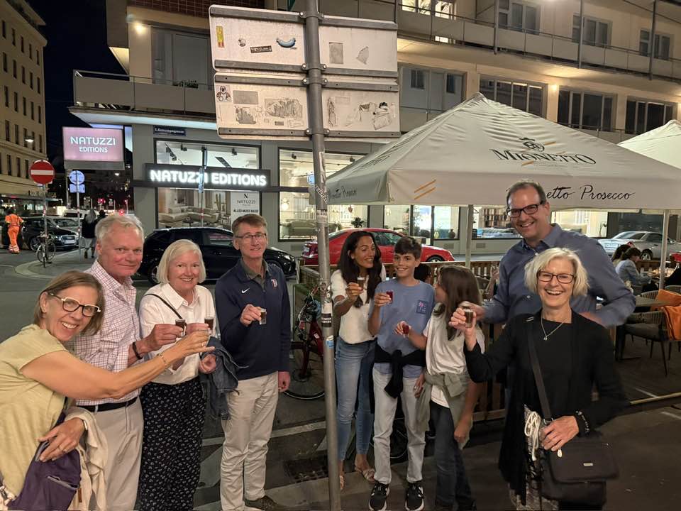 On our final night in Vienna, we were fortunate enough to reconnect with the Doerks for dinner at a fine local restaurant. They are a charming family, and I know our American friends Karlie and Eileen loved getting to know them. With all our bicycling and sightseeing complete, it was time to return to Passau and rescue Guy.