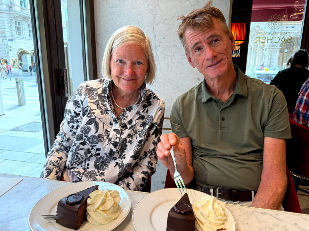Bicycling into a city as vast as Vienna was not as daunting as we had feared. The D1 bike lane funneled us right into the city center. Setting up camp in the town’s oldest, and most beautiful hostelry, the Hotel Stefanie, was no bother, either. From this fine establishment Vienna’s most glorious sites were but a short stroll away. We marveled at St. Stephen’s Cathedral, viewed great art at the Belvedere Palace, where Gustav Klimt’s “The Kiss” is on display. At the Albertina, we enjoyed a Monet-to-Picasso retrospective. A must on your stroll through Vienna is a stop at the Sacher Hotel for a famous chocolaty torte treat.