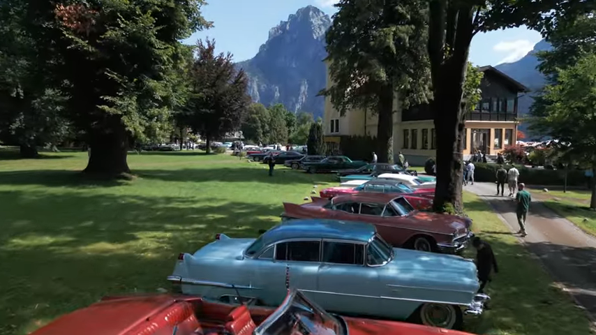 As expected, BIG MEET organizers arraigned a weekend of luxurious activities. Imagine dozens of Detroit beauties cruising through sunny Austrian towns on our way to a fabulous buffet at a lakeside mansion. Surprised Teutonic townsfolk who witnessed the parade appeared slack-jawed and mute with disbelief. The next day, a visit to an exquisite chocolatier ruined everyone’s diet. Finally it was time for the display of Cadillacs at the Kremsmünster town park.